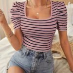 Presentamos nuestra Playera de Rayas Vibrantes con Mangas Abullonadas:
