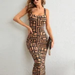 Un vestido ajustado con un diseño de camiseta sin mangas con estampado completo.