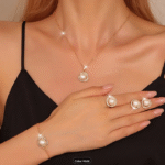 4 piezas de conjunto de joyería de perlas y rhinestones de inspiración vintage para mujeres - Collar de aleación, pendientes y anillo - Perfecto para uso diario, regalo, Día de San Valentín y Día de la Madre