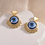 Pendientes de Gota con Inspiración Vintage para Mujer - Ojo Azul y Corazón, Pasadores de Acero Inoxidable, Artesanía de Cobre, Perfectos para Atuendo Casual