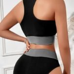 ✨ Bralette sexy con diseño de bloque de color y bragas de bikini de cintura baja.