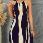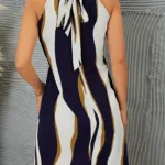 Vestido Con Estampado Geométrico Y Escote Con Llave, Vestido Casual Sin Mangas Con Lazo En La Espalda